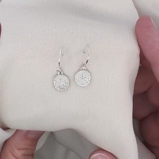 A tiny pair of earrings featuring sand dollars that delicately hang from the ear. For those that want to take the ocean wherever they go, these minimalistic earrings are perfect! Made from 100% recycled sterling silver and ethically made in Australia. Suitable for all of your ocean-loving adventures.